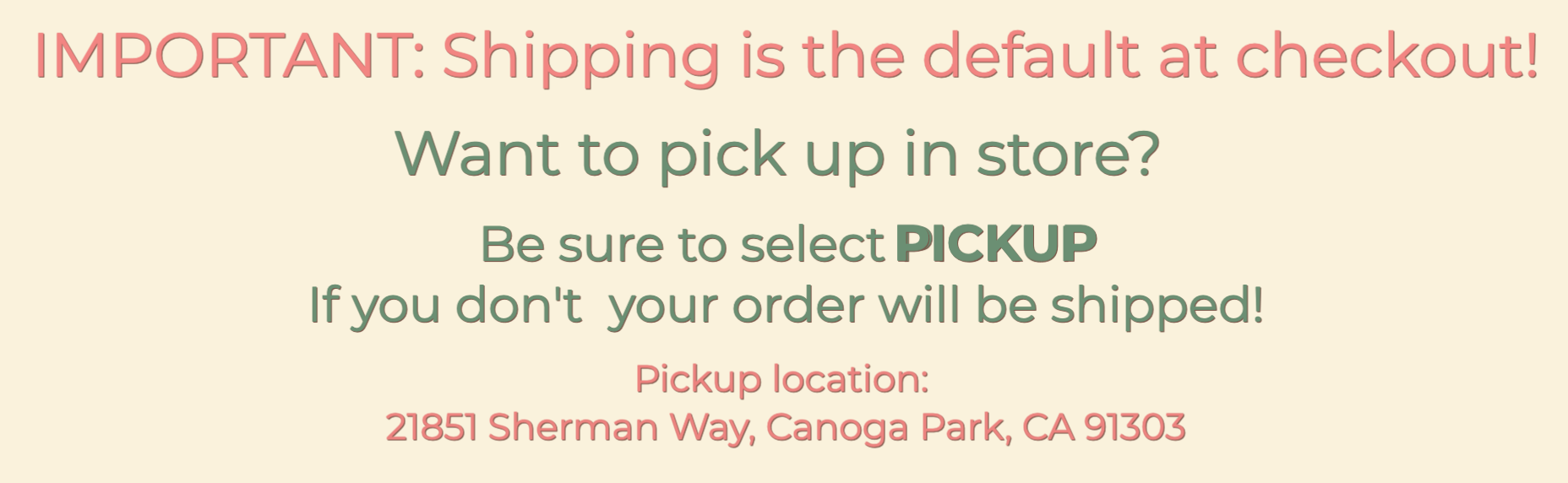 PLEASE BE SURE TO SELECT "PICK UP" or "SHIP" at checkout!!!!