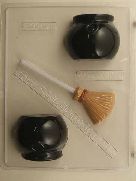 Molde de chocolate/caramelo, 3D - Halloween, Caldero y escoba de bruja 3D