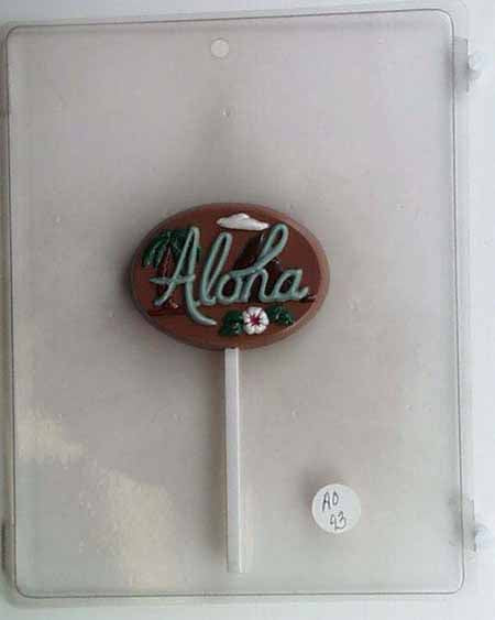 Molde para chocolate/caramelo, piruleta - Para cualquier ocasión, Aloha en escritura sobre óvalo