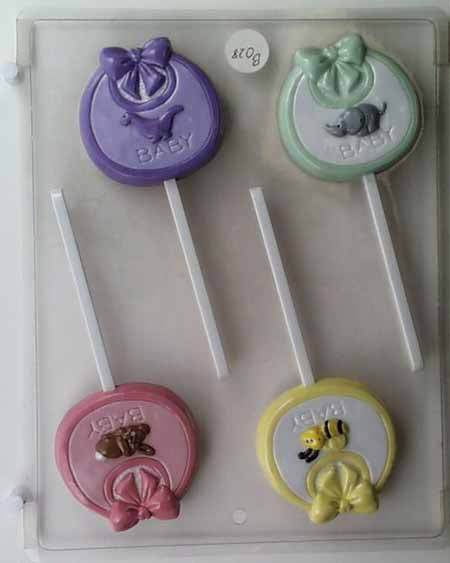 Molde de Chocolate// Caramelo, Piruleta - Baby Shower, Babero con Diferentes Animales en Forma Redonda