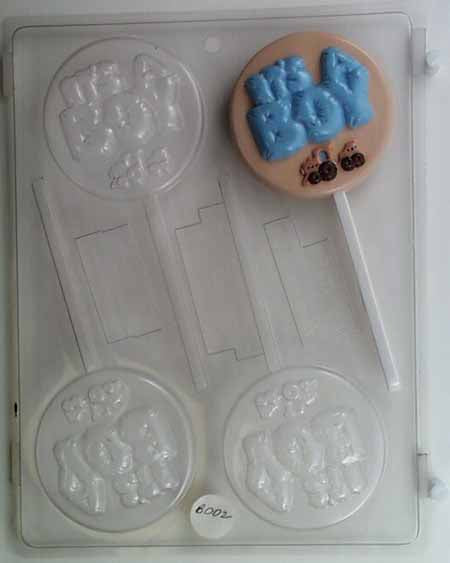 Molde para Chocolate// Caramelo, Piruleta - Baby Shower, "Es un Niño" con Camiones en Redondo