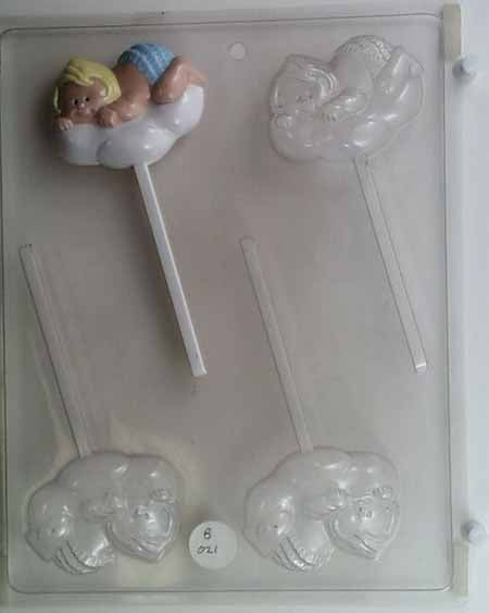 Molde de chocolate/caramelo, piruleta - Baby Shower, Bebé en una nube con pañal con volantes