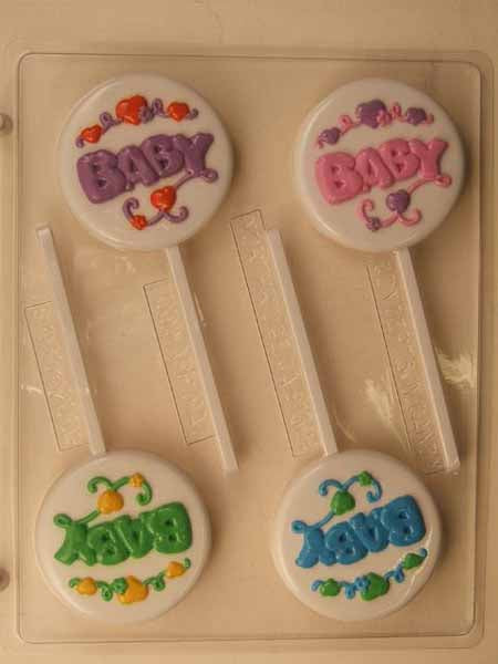 Molde para bombones y caramelos, piruleta - Baby Shower, "Bebé" con corazones y espirales en forma redonda