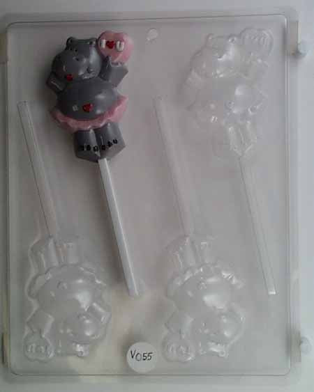 Molde de chocolate/caramelo, piruleta - Amor, hipopótamo bailarina sosteniendo un corazón con la frase "TE QUIERO"