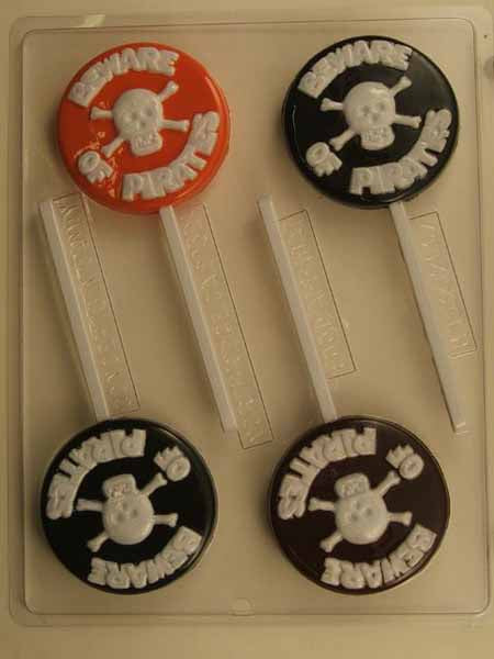 Molde para chocolate/caramelo, piruleta - Halloween, Cuidado con los piratas con calavera y huesos cruzados en forma redonda