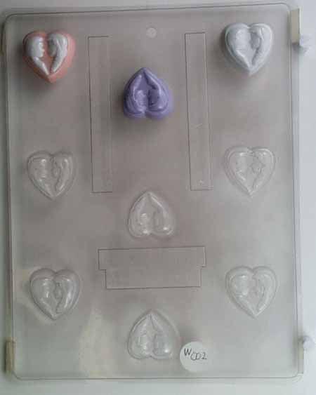 Molde de chocolate/caramelo, mini - Boda, siluetas de novios sobre un fondo de corazón