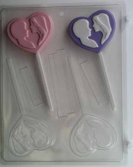 Molde de chocolate/caramelo, piruleta - Boda, siluetas de novios en un corazón