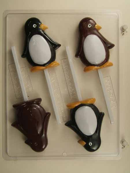 Molde para chocolate/caramelo, piruleta - Navidad, Pingüinos navideños