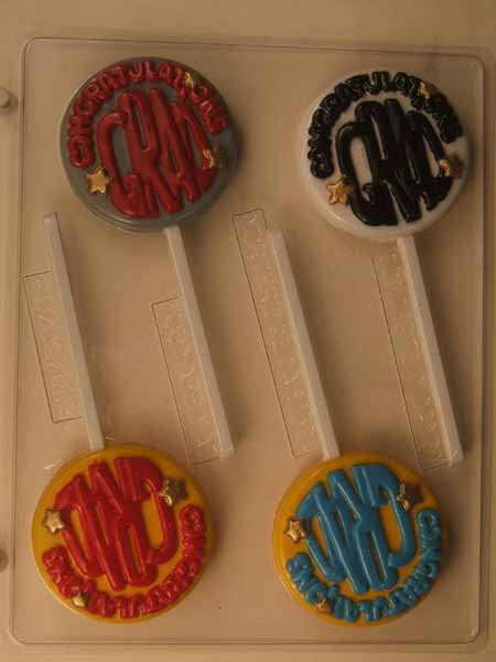 Molde para caramelos de chocolate, piruleta - Graduación, "Felicidades Graduado" con estrellas redondas