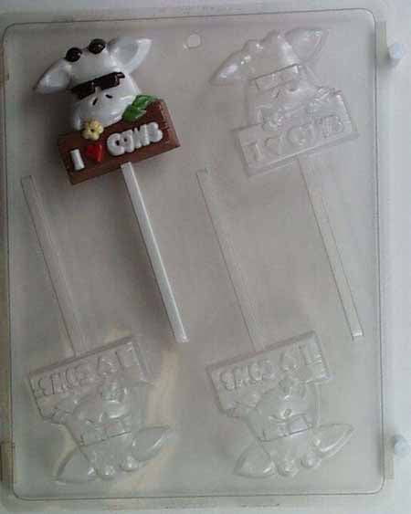 Molde de chocolate/caramelo, piruleta - Animal, vaca con gafas de sol