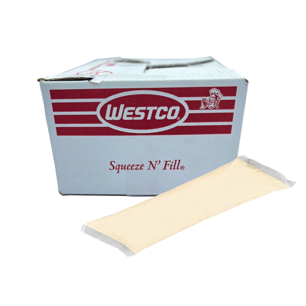 El relleno de queso crema es dulce y cremoso, comúnmente usado en pasteles, tartas y pasteles. Es conocido por su sabor suave, ligeramente ácido y rico.