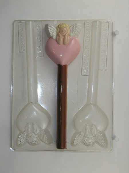 Molde de chocolate/caramelo, pretzel - Amor, Cupido descansando la cabeza sobre las manos en el corazón Varilla de pretzel