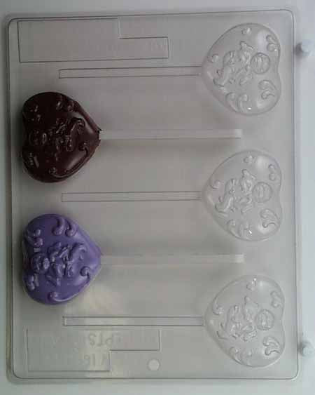 Molde de chocolate/caramelo, piruleta - Amor, Cupido descansando la cabeza sobre las manos en el corazón