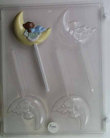 Molde para chocolate/caramelo, piruleta - Baby Shower, osito durmiendo en luna creciente