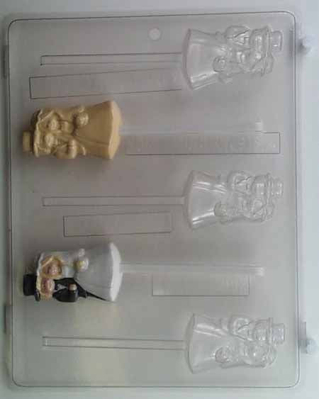 Molde de chocolate/caramelo, piruleta - Boda, adorables novios con sombrero de copa