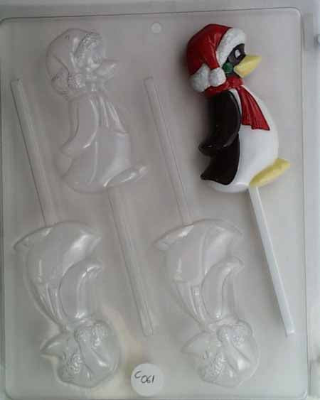 Molde de chocolate/caramelo, piruleta - Festivo, pingüino con bufanda y gorro de Papá Noel