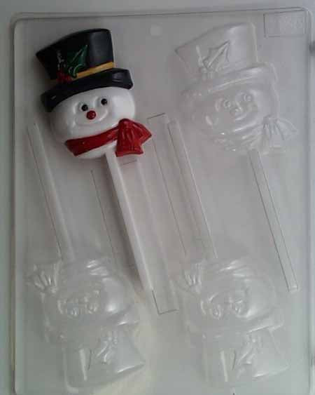 Molde para chocolate y caramelos, piruleta - Cara de muñeco de nieve navideño con sombrero de copa y bufanda