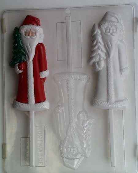 Molde para chocolate y caramelos, piruleta navideña, Papá Noel alargado con un pequeño árbol de Navidad.