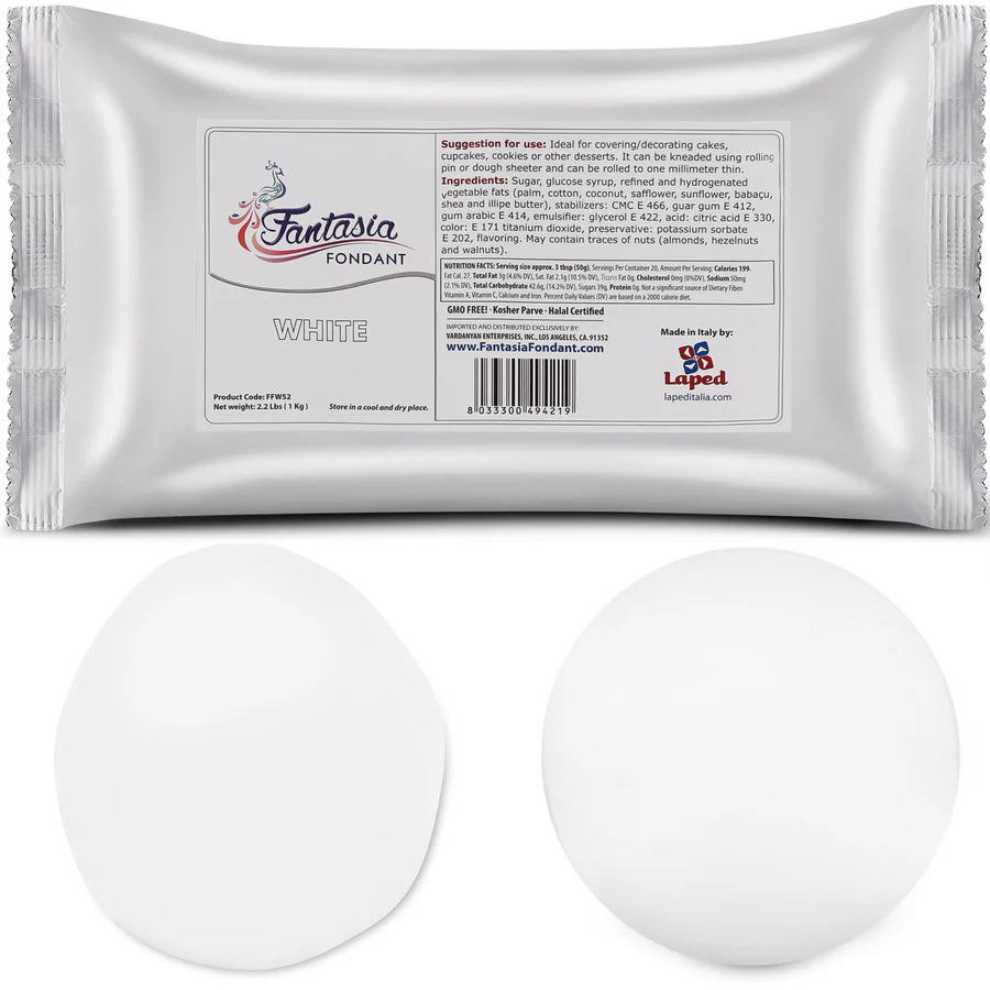 Fantasia Fondant is used to cover and decorate cakes, cupcakes, cookies and other dessert items. This fondant offers great resistance to drying out, cracking, tearing, breaking and 'elephant skin,' giving a baker a long work time. It is easy to work with, performs in silicon cake molds, and fondant sheeters. It has a mild vanilla flavor similar to a marshmallow. It is shelf-stable for easy storing until needed.