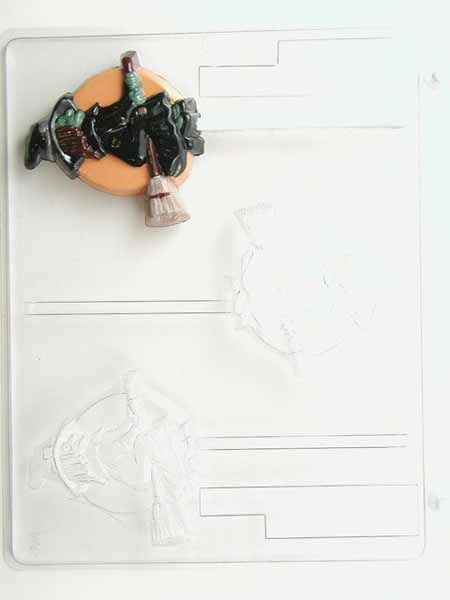 Molde de chocolate/caramelo, piruleta - Halloween, bruja volando en la luna