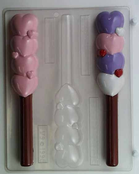 Molde de chocolate/caramelo, pretzel - Amor, cuatro corazones apilados verticalmente, varilla de pretzel