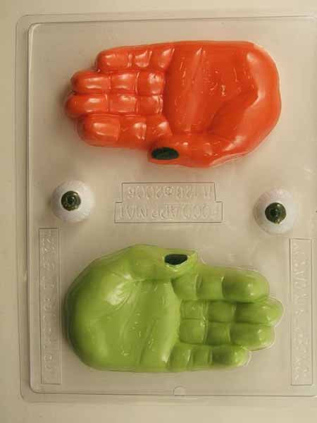 Molde de chocolate y caramelo: Halloween, manos y ojos de fantasma