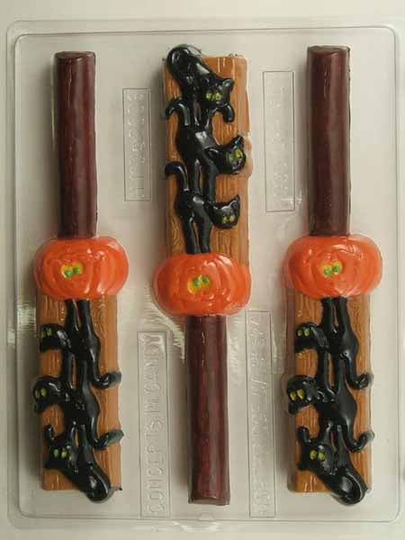 Molde de chocolate/caramelo, pretzel - Halloween, gatos parados uno encima del otro, barra de pretzel