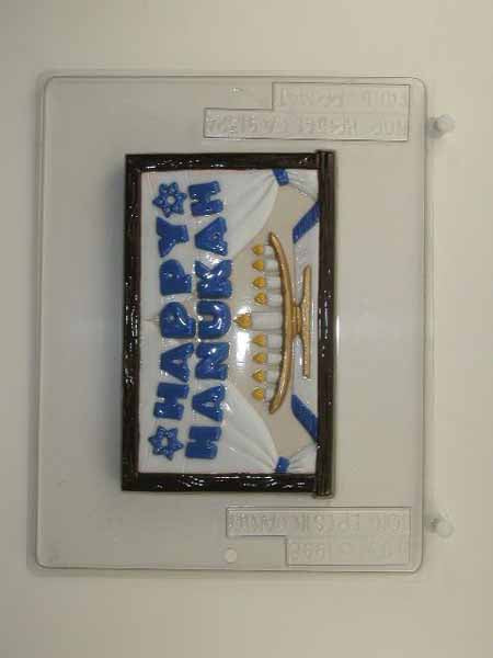 Molde de chocolate y caramelo, festivo, "Feliz Hanukkah" con menorá