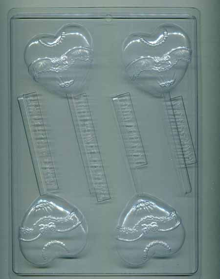 Molde de chocolate/caramelo, piruleta - Boda, corazón con vestido de novia y collar