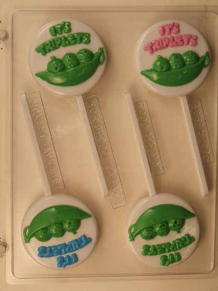 Molde de Chocolate// Caramelo, Piruleta - Baby Shower, "Son Trillizos" Guisantes en Vaina Redonda