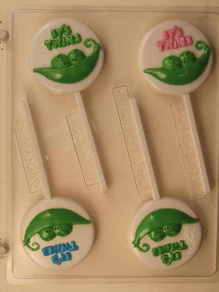 Molde para chocolate/caramelos, piruleta - Baby Shower, "Son gemelos" Guisantes en una vaina redonda