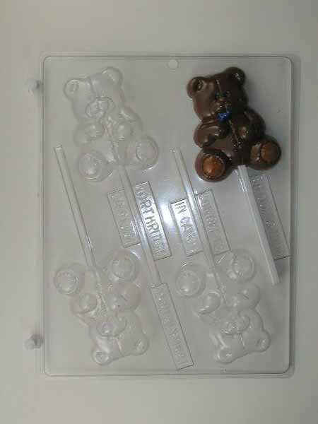 Molde de chocolate/caramelo, piruleta - Animal, oso con piruleta