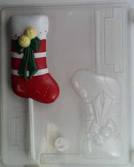 Molde para Chocolate// Caramelos, Piruleta - Navidad, Media Navideña Mediana-Grande Decorada con Lazo y Campanas