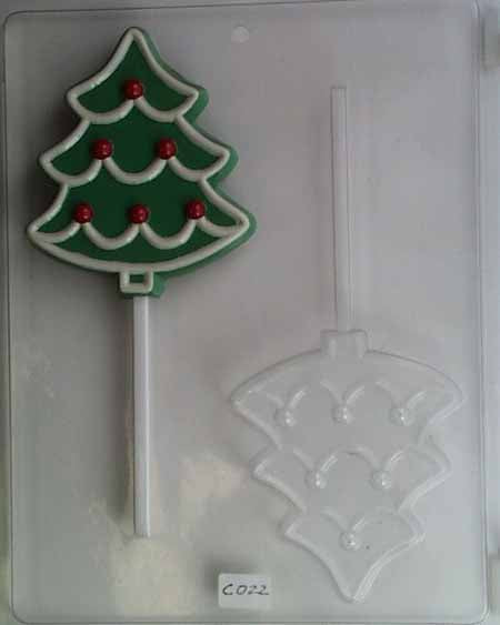 Molde para chocolate y caramelos, piruleta navideña, árbol de Navidad grande con adornos