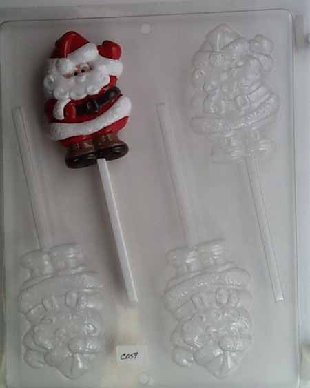 Molde para chocolate y caramelos, piruleta - Fiesta, Papá Noel navideño saludando, tamaño mediano