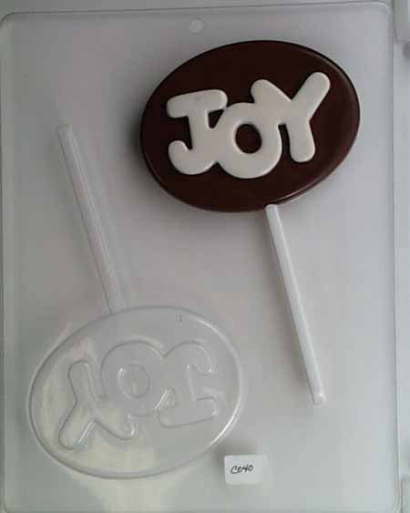 Molde para caramelos de chocolate, piruleta - Festividad, "Alegría" en letras de burbujas sobre óvalo