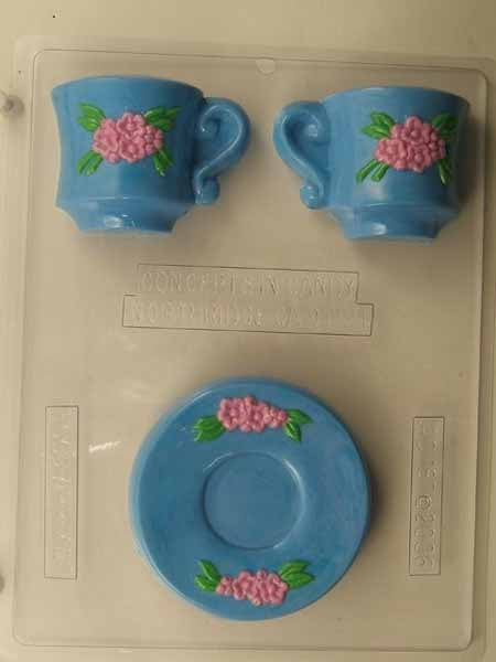 Molde para chocolate y dulces - Para cualquier ocasión, taza de té y platillo con flores