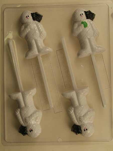 Molde para chocolate/caramelo, piruleta - Halloween, momia con murciélago