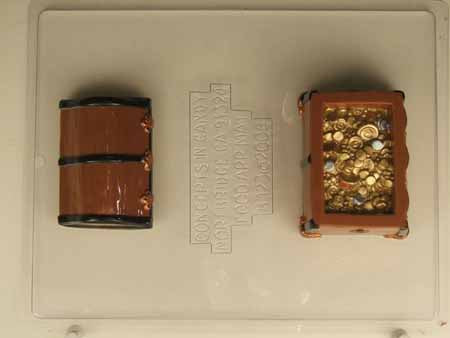 Molde para chocolate y caramelos 3D - Halloween, cofre pirata 3D con tapa y tesoro en su interior