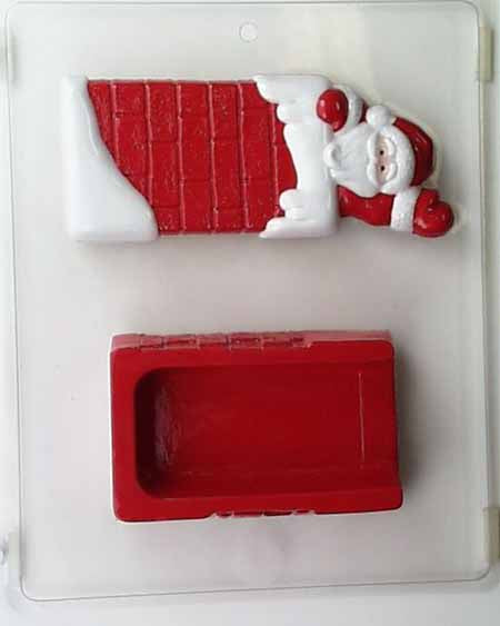 Molde para chocolate y dulces, caja para verter - Festivo, Papá Noel saludando en la chimenea
