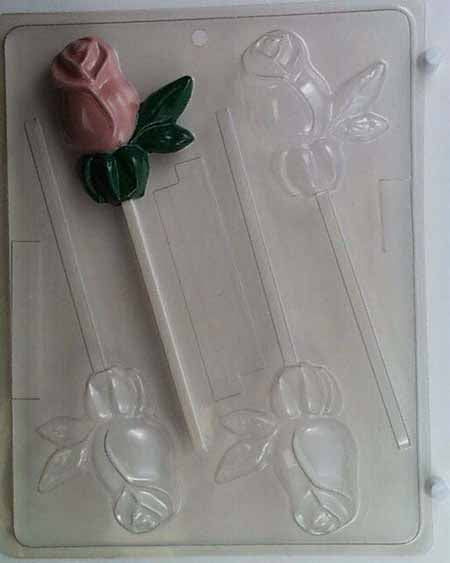 Molde para chocolate/caramelo, piruleta - Flor, capullo de rosa con hojas