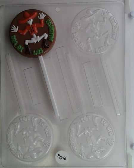 Molde de chocolate/caramelo, piruleta - Halloween, esqueleto con sombrero y botas en forma redonda