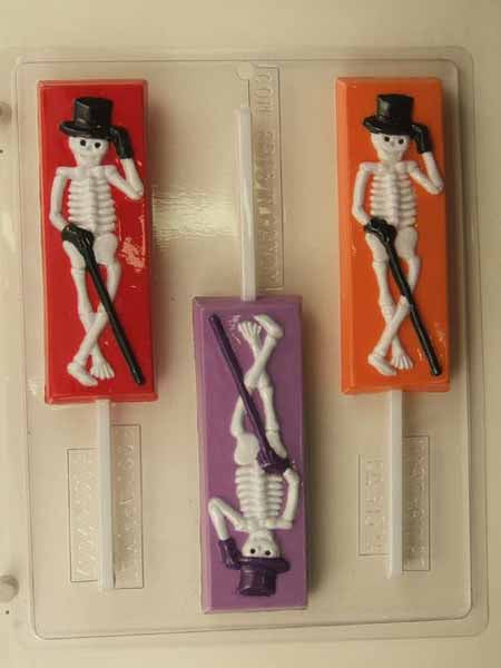 Molde de chocolate/caramelo, piruleta - Halloween, esqueleto con sombrero de copa, bastón y guantes en rectángulo