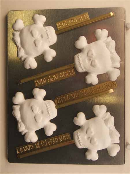 Molde para chocolate/caramelos, piruleta - Halloween, calavera y huesos, ojos en forma de corazón