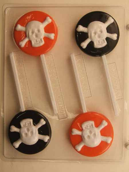Molde para chocolate/caramelo, piruleta - Halloween, calavera y huesos cruzados en forma redonda