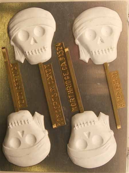 Molde para chocolate/caramelos, piruleta - Halloween, calavera con pañuelo