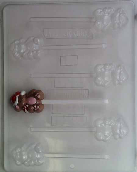 Molde para chocolate y caramelos, piruleta navideña, osito navideño con bastón de caramelo