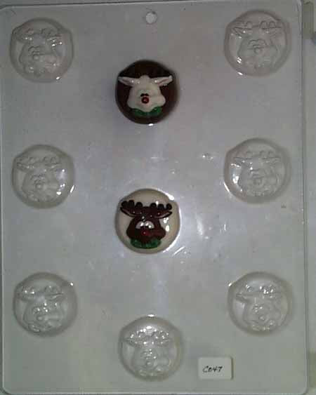 Molde para chocolate/caramelo, mini - Festivo, cara de reno en forma redonda