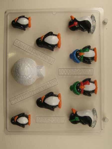 Molde para chocolate/caramelo, piruleta - Animal, pingüinos con iglú