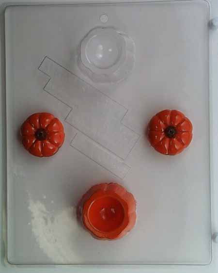 Molde para chocolate y dulces, caja para verter - Acción de Gracias, calabazas pequeñas, dos de cada una con base y tapa